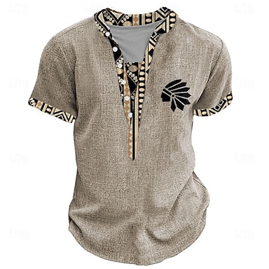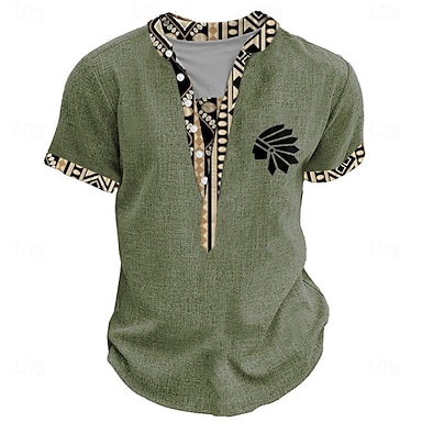 Per uomo Tribale Stampa bandana Maglietta Maglia Henley Manica Corta Stampa 3D Designer Etnico Casuale Quotidiano Estate Primavera Giallo Marrone Verde Colletto Mao Maglietta Henley