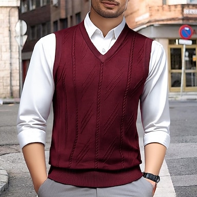 Per uomo Gilet Maglione elegante Maglione Maglione a maglia A Coste Maglia Top Regolari Lavorato a maglia Scollo a V Abbigliamento quotidiano Data Abbigliamento Autunno Inverno Cammello Vinaccia S M L