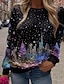Felpa Pullover Donna Natale Grafica Moda Casual Manica Lunga Collo tondo Regular Tops Street Quotidiana Stampa Verde Erba Rosa Rossa Blu Viola Autunno Inverno
