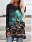 Natale Per donna Maglietta Grafico Albero di Natale Vintage Elegante Casual Manica Lunga Girocollo Top Regolari Quotidiano Uscire Weekend Stampato Blu Nero Rosso Autunno Inverno