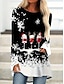 Natale Per donna Maglietta Grafico Vintage Elegante Classico Manica Lunga Girocollo Top Regolari Quotidiano Uscire Weekend Stampato Nero Autunno Inverno