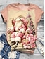 Natale Per donna Maglietta Vintage Elegante Casual Manica Corta Girocollo Top Regolari Quotidiano Weekend Stampato Rosa Rosso Verde Grigio Autunno Inverno