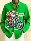 Natale Per uomo Babbo Natale Moto natale divertente Camicia Camicia con Bottoni Manica Lunga Divertente Ferie Primavera Autunno Collo ripiegato Stampa 3D camicie con colletto Una tasca anteriore Blu