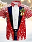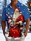 Natale Per uomo Babbo Natale Renna Fiocco di neve Camicia Camicia con Bottoni Manica Corta Moda Casual Ferie Estate Primavera Collo ripiegato Stampa 3D camicie con colletto Una tasca anteriore Blu