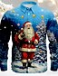 Natale Per uomo Babbo Natale Gesto natale divertente Camicia Camicia con Bottoni Manica Lunga Divertente Regali di Natale Ferie Primavera Autunno Collo ripiegato Stampa 3D camicie con colletto Blu