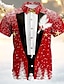 Natale Per uomo Costume di Natale Colletto finto e design del vestito Camicia da smoking stampata con cravatta Camicia Camicia con Bottoni Manica Lunga Moda Casual Regali di Natale Ferie Primavera