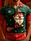 Natale Per uomo Babbo Natale Renna Slitta Camicia Camicia con Bottoni Manica Corta Moda Casual Ferie Estate Primavera Collo ripiegato Stampa 3D camicie con colletto Una tasca anteriore Azzurro+Verde
