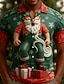 Natale Per uomo Babbo Natale Renna Slitta Camicia Camicia con colletto cubano Manica Corta Divertente Regali di Natale Ferie Primavera Autunno Collo alla coreana Stampa 3D Camicie con bottoni verde