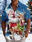 Natale Per uomo Babbo Natale Renna natale divertente Camicia Camicia con Bottoni Manica Corta Divertente Ferie Estate Primavera Collo ripiegato Stampa 3D camicie con colletto Una tasca anteriore Blu