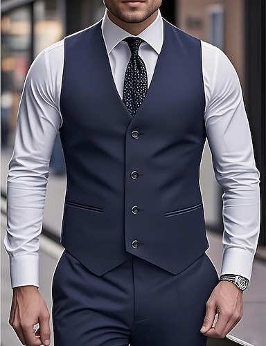 Uomo Abiti da lavoro Casuale Matrimonio Nero Blu marino Primavera, Autunno, Inverno, Estate Tuta Bavero classico Quotidiano Formale Tinta unita Vestibilità standard 3 pezzi Monopetto Due Bottoni