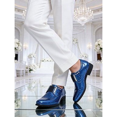 scarpe slip-on da uomo in pelle verniciata blu con stampa coccodrillo - eleganti calzature formali per incontri di lavoro, serali e matrimoni