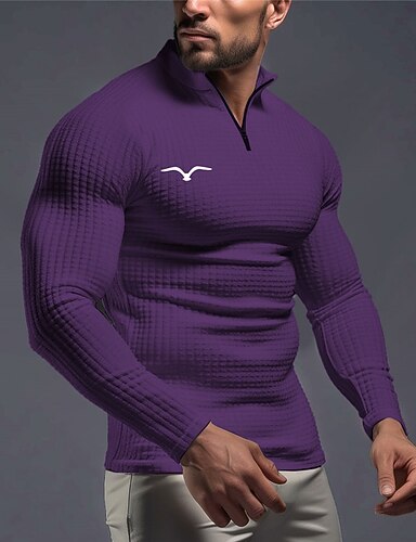 Per uomo Lupo Nido d'ape Felpa Moda Quotidiano Da caccia Collo alla coreana Zip a un quarto All'aperto Abbigliamento casual alla moda Viaggio Campeggio Blu Viola Blu scuro Con zip Autunno Inverno