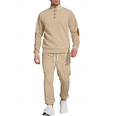 Per uomo Nido d'ape Tuta da Ginnastica Impostato Collo alla coreana Quotidiano All'aperto Vacanza Athleisure Coulisse Semplice bianco+vino rosso Bianco Cachi Abbigliamento sportivo Sport Moda Autunno