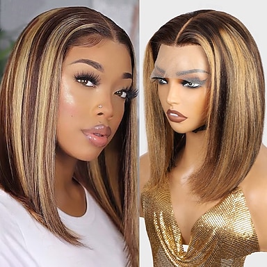 p4/27# Parrucca corta bobo con frontale in pizzo 13x4, capelli umani lisci, densità 150%