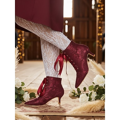 Scarpe da donna con tacco a spillo in pizzo bordeaux, modello Mary Jane, con tacco a gattino e fibbia in strass - eleganti scarpe retrò anni '20 per donne, ideali per matrimoni, feste da ballo