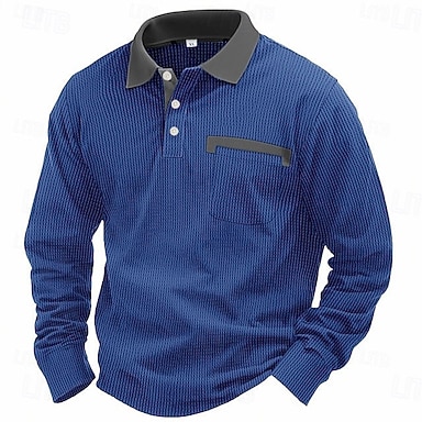 Per uomo Magliette Polo a Nido d'Ape Testurizzato Casuale Classico Manica Lunga Sport Moda Testurizzato Tasca Autunno Vestibilità regolare Blu Marrone Scuro Bianco Nero Borgogna Blu marino Magliette