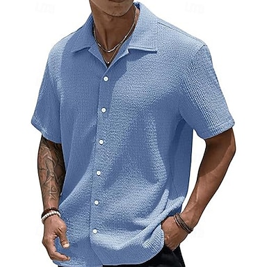 Per uomo Camicia Camicia a nido d'ape Camicia casual Camicia con Bottoni Blu Nero Bianco Viola Grigio scuro Manica Corta Semplice Colletto a Camicia Casuale Quotidiano Asciugatura Rapida Abbigliamento