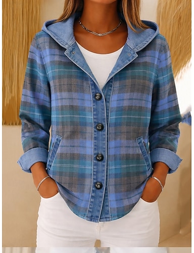 Per donna Giacca Casual Giacca con Cappuccio Caldo Confortevole Cerniera Tasca Bottoni Casual Plaid Casuale All'aperto Vacanza Uscire Regolare Con Cappuccio Vestibilità comoda Manica Lunga Capispalla