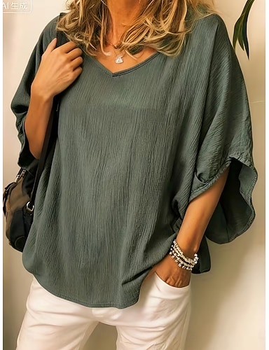 Per donna Camicia Camicia Boho Blusa Semplice Elegante Classico Moderno Mezza Manica Scollo a V Top Regolari Quotidiano Ferie Uscire Verde militare Estate Primavera