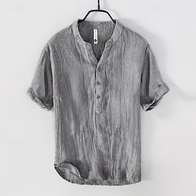 Per uomo Camicia Camicia di lino Camicia Estiva Abbigliamento da spiaggia Camicia con colletto alla coreana Camicia con Bottoni Semplice Casuale Quotidiano Nero Bianco Cachi Grigio Manica Corta Collo