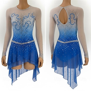 Abito da pattinaggio artistico Per donna Pattinaggio sul ghiaccio Vestito Blu Patchwork Orlo asimmetrico Spandex Rete Alta elasticità Allenamento Competizione Vestiti da pattinaggio sul ghiaccio