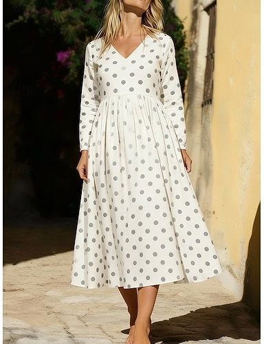Per donna Abito maxi Abito Boho Abito Vintage Vestito Casual Vintage Quotidiano All'aperto Vacanza Vestibilità regolare Grafico Manica Lunga Scollo a V Verde Primavera Autunno