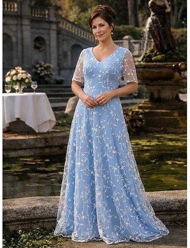 Linea ad A Lunghezza alla caviglia Abito da madre della sposa Abito con ricami floreali Abiti da Cocktail Elegante Quotidiano Floreale Manica Lunga Scollo a V Festa in giardino Matrimonio Pizzo con
