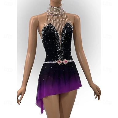 Vestito da pattinaggio artistico Per donna Da ragazza Pattinaggio sul ghiaccio Vestiti Viola Foro per pollice tintura sfumata Elevata elasticità Professionale Competizione Vestiti da pattinaggio sul