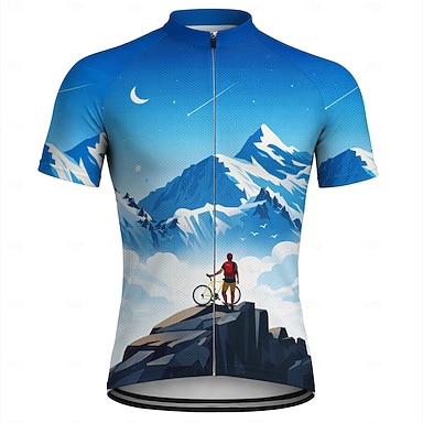 Da uomo Maglia da Ciclismo Maglia da downhill Paesaggio Manica Corta Bicicletta Maglia Maglietta con 3 tasche posteriori Resistente ai Raggi UV Asciugatura Rapida Con tasche Cerniera Frontale Gli