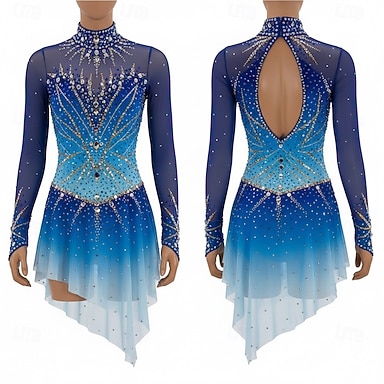 Vestito da pattinaggio artistico Per donna Da ragazza Pattinaggio sul ghiaccio Vestiti Blu Foro per pollice tintura sfumata Elevata elasticità Professionale Competizione Vestiti da pattinaggio sul