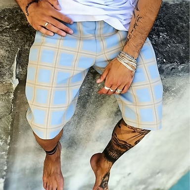 Per uomo Geometrico Griglia / Plaid Pantaloncini da tuta Shorts da Spiaggia Pantaloncini in spugna Misura del girovita medio Moda Casual Quotidiano Abbigliamento casual alla moda Ferie Stampa 3D