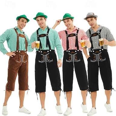 Oktoberfest Lederhosen Camicia Bavarese Bavarese Tedesco Prati Per uomo Panno in stile tradizionale Blusa Shorts Cappello