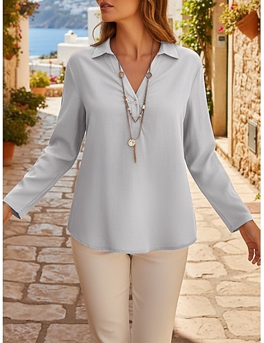 Per donna Camicia Blusa Top lungo senza maniche Semplice Elegante Classico Moderno Manica Lunga Scollo a V Top Regolari Quotidiano Ferie Uscire Bianco Giallo Rosa Azzurro cielo Primavera Autunno