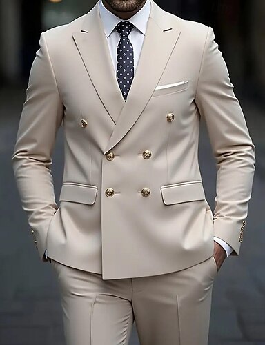 Uomo Abiti da sposa Casuale Affari Beige Primavera, Autunno, Inverno, Estate Tuta Bavero a lancia Formale Tinta unita Vestibilità su misura 2 pezzi Doppiopetto a sei bottoni