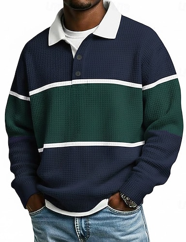 Per uomo Blocco di colori Magliette Polo a Nido d'Ape Manica Lunga Magliette polo Camicie con Colletto Casual Abbigliamento quotidiano Stampa 3D Bottoni Primavera Autunno Inverno Blu Marrone Grigio