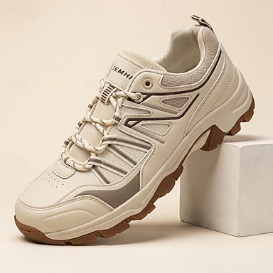 Scarpe da ginnastica sportive da uomo beige, robuste, con lacci, ammortizzate, traspiranti, casual, ideali per uomini attivi, perfette per l'uso quotidiano, i viaggi, lo stile streetwear e le attività all'aperto leggere.