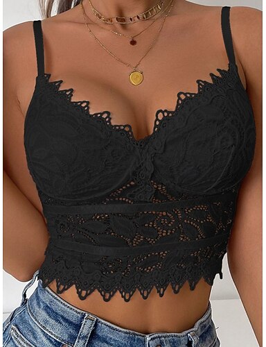 Per donna Blusa Top in pizzo Canotta a canotta Pizzo Semplice Elegante Sexy Senza Maniche Spallina Top Regolari Quotidiano Ferie Uscire Blu Nero Rosa Estate Primavera