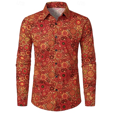 Retrò Vintage Anni '70 Camicia Disco Geometrico Psichedelico Costume Per uomo Halloween Carnevale Festival Musicale Parata dell'Orgoglio Adulti Camicia