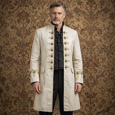 Retrò Vintage Medievale Rinascimento Cappotto Frac Abbigliamento esterno Lunghe Principe Nobile Costume Per uomo Stile Steampunk Halloween Carnevale Mascherata Fiera Rinascimentale LARP Carnevale di