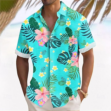 Per uomo Foglia di palma Piante Tropicali Fiori Camicia hawaiana estiva Camicia con Bottoni Camicia Aloha Manica Corta Hawaiano Vacanza Ferie Abbigliamento mare Estate Primavera Collo ripiegato