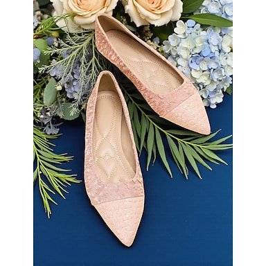 eleganti ballerine in pizzo rosa da donna, punta affilata, comode scarpe da invitata per matrimoni in spiaggia
