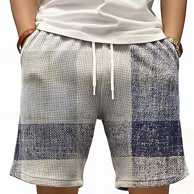Per uomo Geometrico Blocco di colori Pantaloncini Waffle Pantaloncini da tuta Pantaloncini casual Misura del girovita medio Moda Casual Vacanza Jogging Allenamento Testurizzato Coulisse elastica in