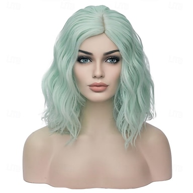 Parrucche Verdi per Donne Corte Ricce a Bob Parrucca Ondulata per Ragazze Colore Verde Menta a Onde Corpo Resistente al Calore Cosplay Festa