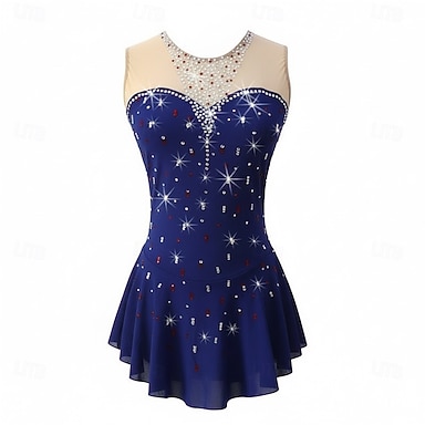 Abito da pattinaggio artistico Per donna Ragazze Pattinaggio sul ghiaccio Vestito Blu Patchwork Rete Alta elasticità Allenamento Competizione Vestiti da pattinaggio sul ghiaccio Classico Cristallo
