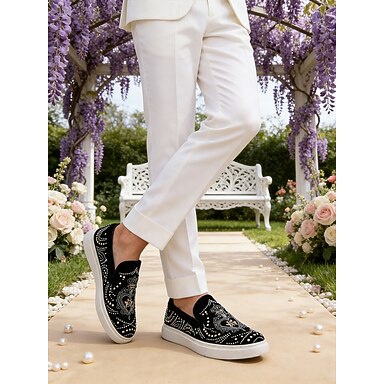sneakers slip-on da uomo in similpelle nera dal design elegante, perfette per gli invitati alle nozze che cercano comfort e stile