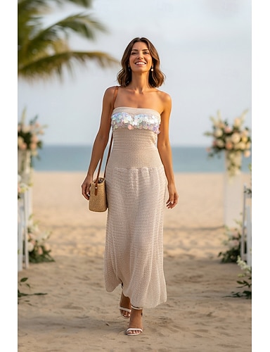 Due Pezzi Linea ad A Lunghezza alla caviglia Abito da invitata a nozze Abiti per invitati a matrimoni Elegante Scintillante Senza Maniche Senza Spalline Festa in giardino Matrimonio con Paillettes