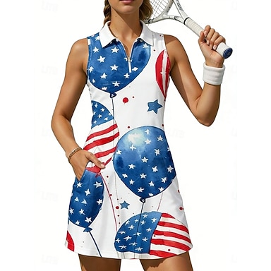 Giornata dell'indipendenza 250° anniversario dell'America Per donna Grafico Bandiera Nazionale Abito sportivo Abito polo da tennis Senza Maniche Zip a un quarto Elastico Traspirante Pallavolo Tennis