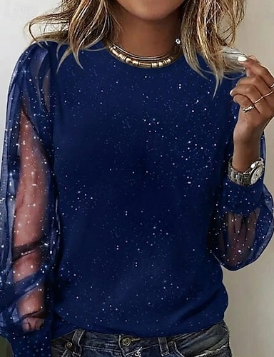 Per donna Strass scintillante Da serata Glitter Patchwork Rete Semplice Moda Moderno Casual Manica Lunga Girocollo Top Regolari Quotidiano Weekend Blu Nero Vino Autunno Inverno