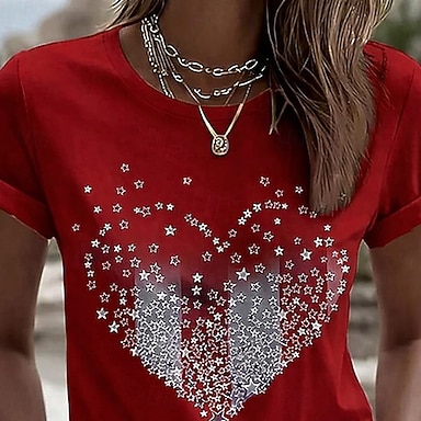 Per donna Maglietta Stampato Grafico Calcio Elegante Classico Casual Manica Corta Girocollo Top Regolari Quotidiano Sportivo Uscire Blu Nero Bianco Rosa Rosso Estate Primavera