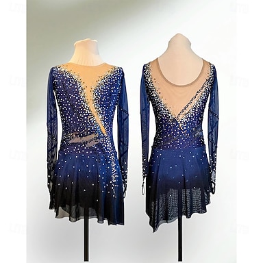 Vestito da pattinaggio artistico Per donna Da ragazza Pattinaggio sul ghiaccio Vestiti Blu Elasticizzato Addestramento Competizione Vestiti da pattinaggio sul ghiaccio Tenere al caldo Cristalli